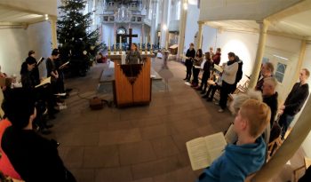 Die Neustädter Kirche in Kerzenlicht getaucht, Kinder in Chormänteln ziehen singend durch den Mittelgang der Kirche, ein großer Chor von Kindern, Jugendlichen und Erwachsenen eröffnet die Adventszeit mit den vertrauten Worten: „Machet die Tore weit und die Türen in der