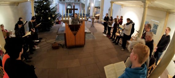 In der Christnacht setzen ehemalige Sängerinnen und Sänger der Jugendkantorei/Kantoreijugend eine langjährige Tradition fort. Nach einer Probe um 11 Uhr gestalten sie gemeinsam mit Kammerchor und Kantoreijugend um 23 Uhr in der Neustädter Kirche die Christmette, unter anderem mit Chorälen aus Bachs Weihnachtsoratorium. In diesem Jahr leitet Susanne Voß das Ehemaligensingen zum letzten Mal.